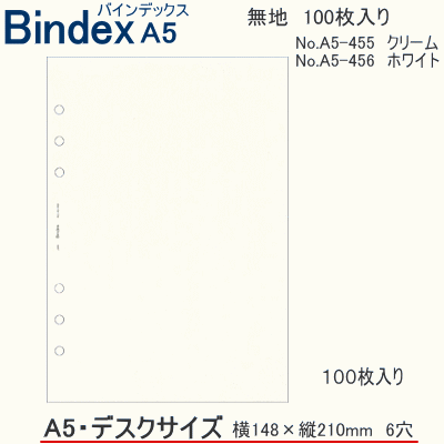 システム手帳 A5 リフィル 無地100枚入 大容量 ホワイト アイボリー デスクサイズ 6穴 バイ・・・