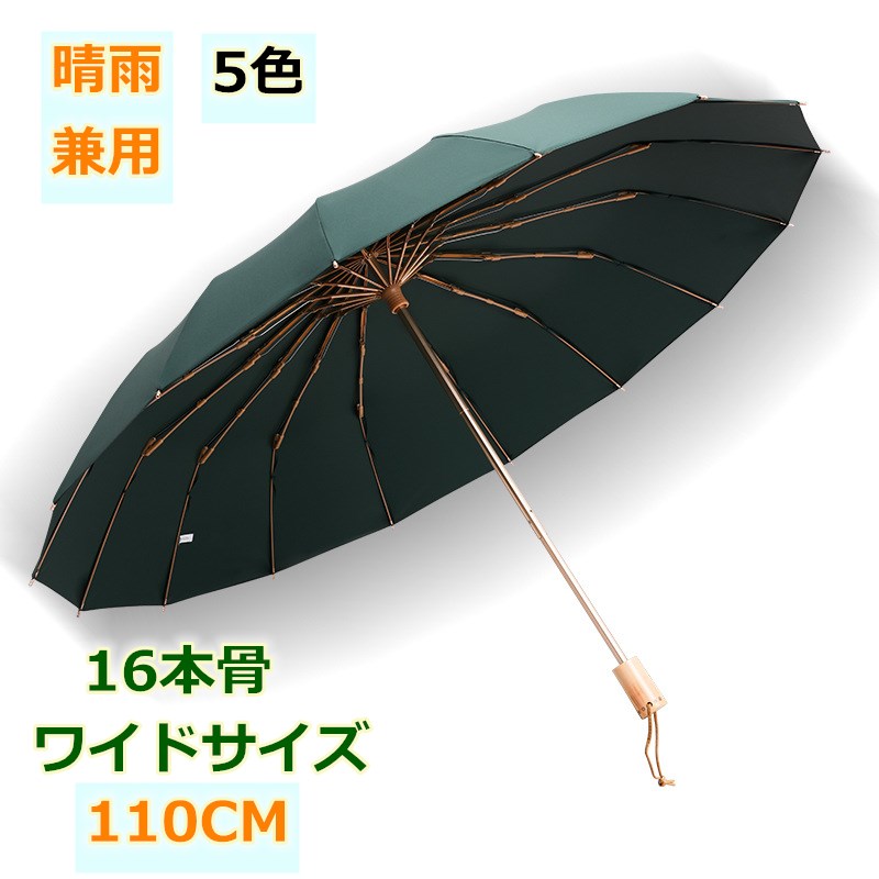 折りたたみ 傘 大きい レディース 16本骨 折り畳み傘 3つ折 メンズ 雨傘 大きめ 軽量 バンブ・・・