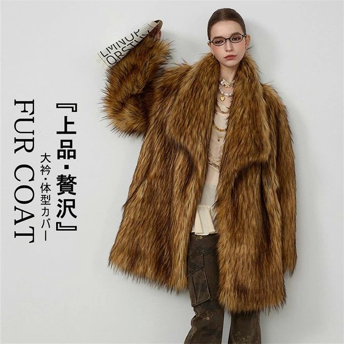 ファーコート レディース 毛皮コート ミンク風 フェイクファーコート ロングコート ロング丈 ミドル・・・