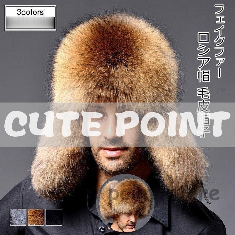 ロシア帽 メンズ 毛皮帽子 フェイクファー カジュアル 厚手 防寒対策 暖かい アウトドア 冬用 男・・・