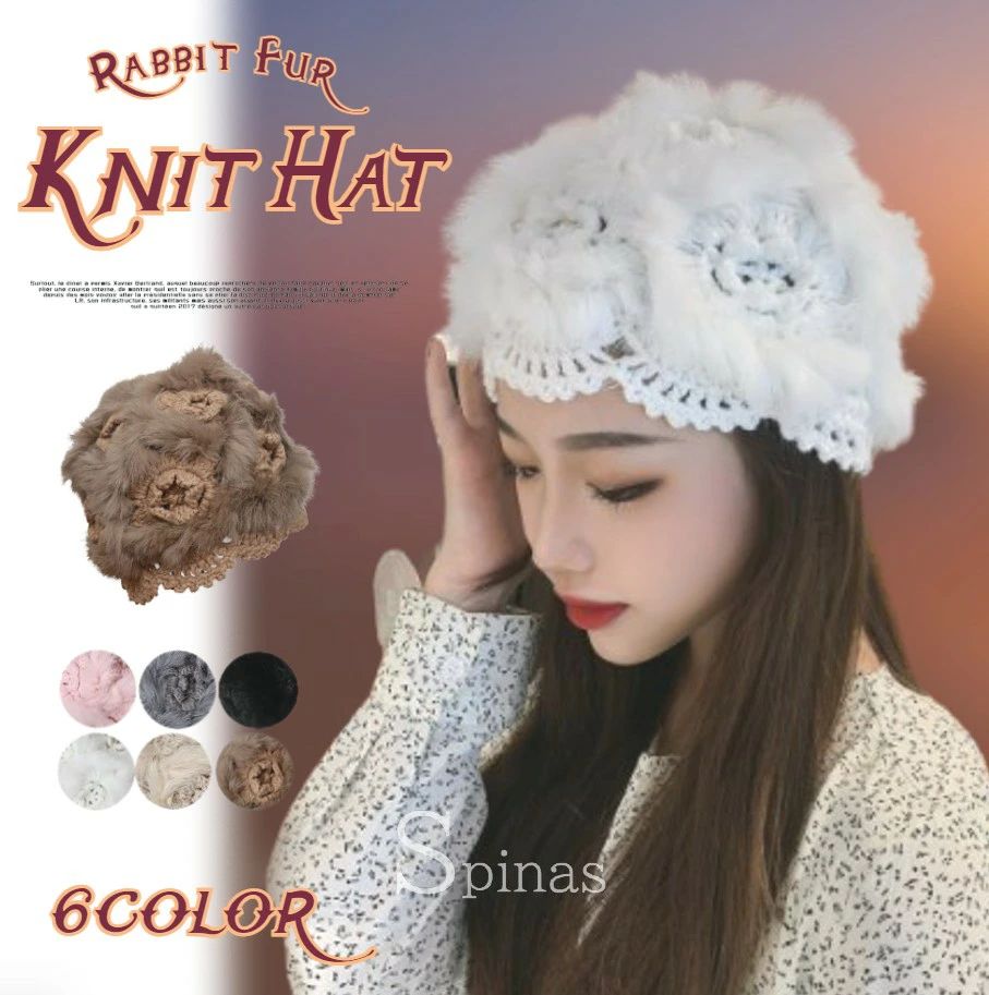 ニット帽 ラビットファー 毛皮帽子 ファーハットドーム型 小顔効果 帽子 ヘッドウェア 毛皮 レディ・・・