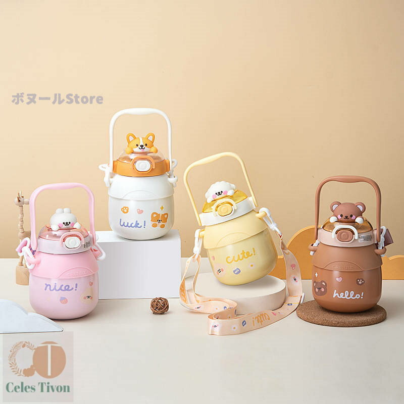 ステンレスボトル 1100ml 水筒 直飲み & コップ付き 2WAY 魔法瓶 ボトル 保冷 保温 ・・・