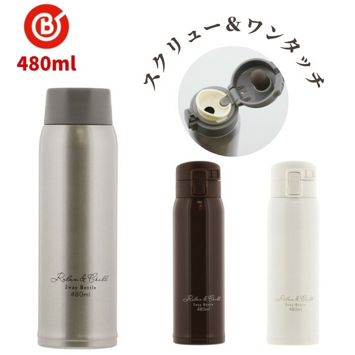 ベストコ 水筒 2way スクリュー ワンタッチ タイプ 直飲み 480ml ステンレス スポーツド・・・