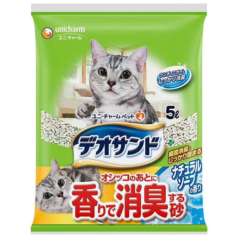 ○△[ユニ・チャーム] デオサンド オシッコのあとに香りで消臭する砂ナチュラルソープの香り 5L 固・・・