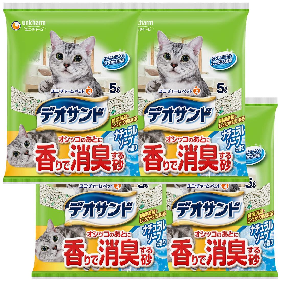 【しっかり固まる】デオサンド 香りで消臭する砂 ナチュラルソープの香り 20L(5L×4個) 猫砂 ・・・