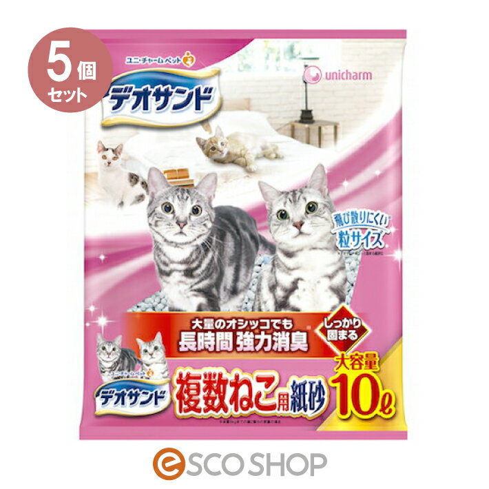 (5個セット) デオサンド 複数ねこ用紙砂 10L 猫砂 固まる ネコ砂 消臭 トイレ ユニ・チャー・・・