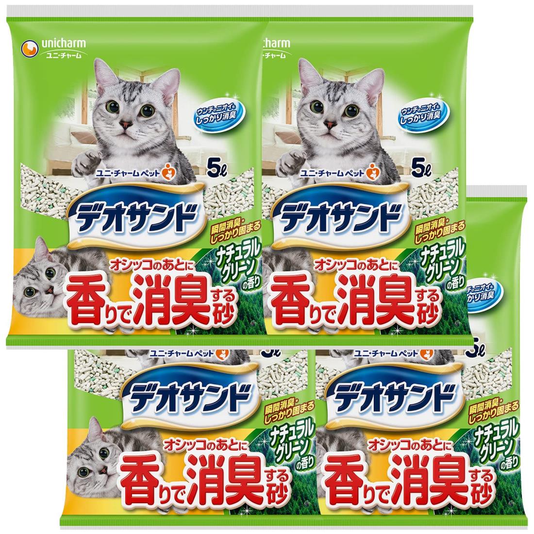 【しっかり固まる】デオサンド 香りで消臭する砂 ナチュラルグリーンの香り 20L(5L×4個) 猫砂・・・
