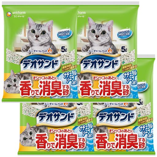 【しっかり固まる】デオサンド 香りで消臭する砂 ナチュラルソープの香り 20L(5L×4個) 猫砂 ・・・