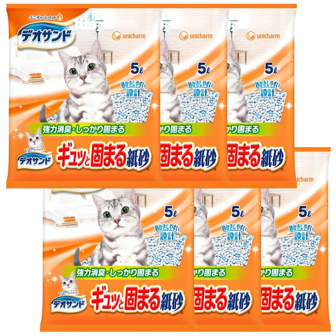【送料込・まとめ買い×6個セット】ユニ・チャーム デオサンド ギュッと固まる紙砂 5リットル 1個