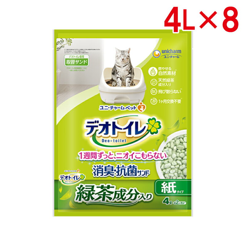 【即納在庫品】 【ケース販売】ユニ・チャーム デオトイレ 緑茶成分入り消臭・抗菌サンド 4L × 8・・・