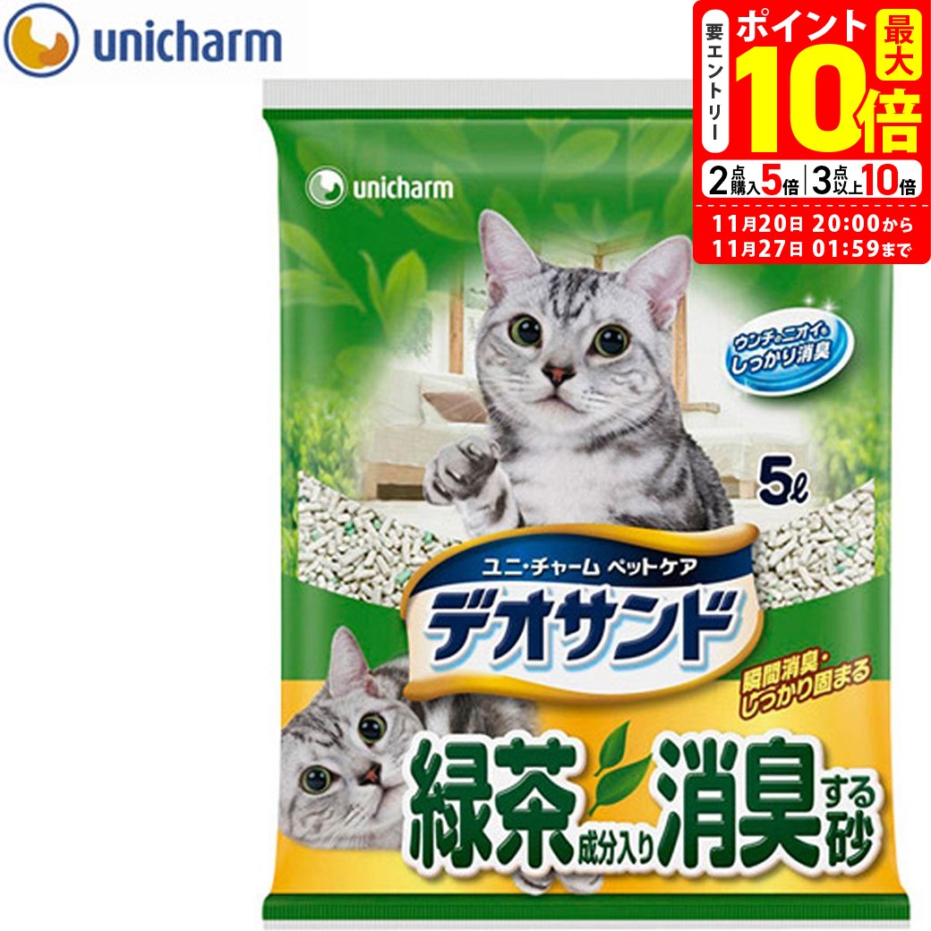 【2個セット】 ユニチャーム デオサンド 緑茶成分入り消臭する砂 5L 猫の室内トイレ用砂 日本製 ・・・