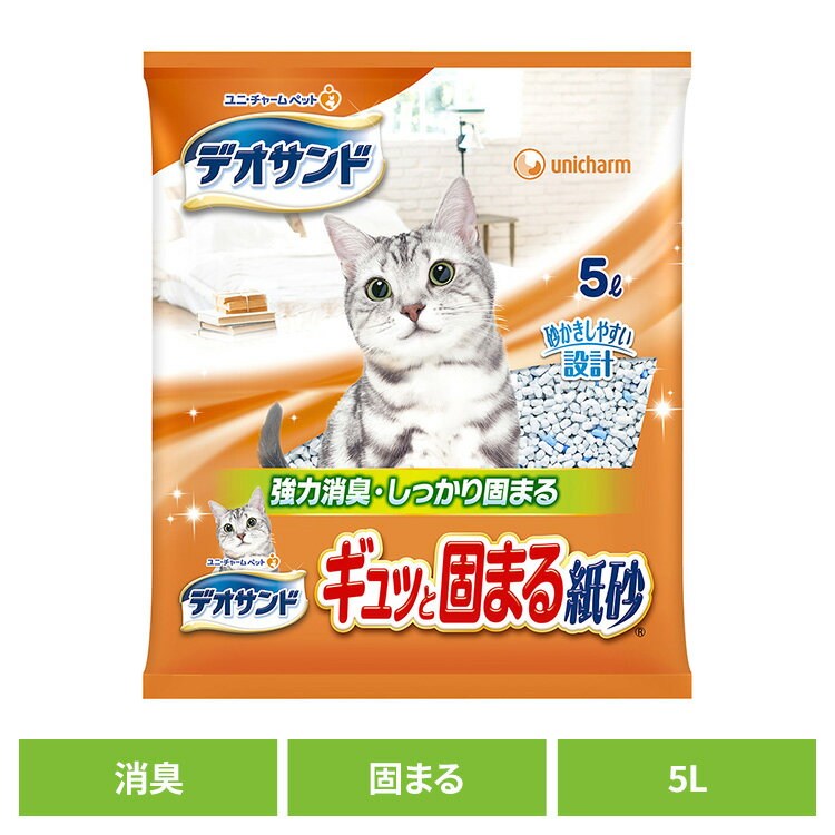 猫砂 紙 ユニチャーム デオサンド 砂 5L トイレ 猫 砂 消臭 固まる 清潔 ネコ unicha・・・