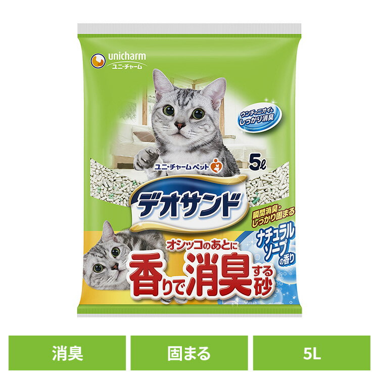 デオサンド オシッコのあとに香りで消臭する砂 ナチュラルソープの香り 5L ユニチャーム▼a ペット・・・