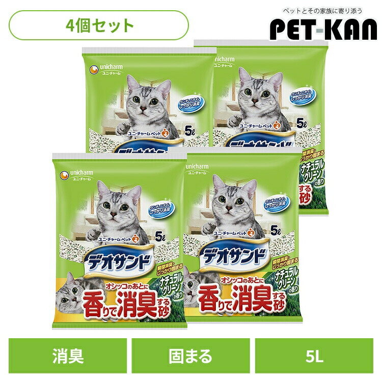 【4個】猫トイレ用品 猫砂 鉱物タイプ デオサンド オシッコのあとに香りで消臭する砂 ナチュラルグリ・・・