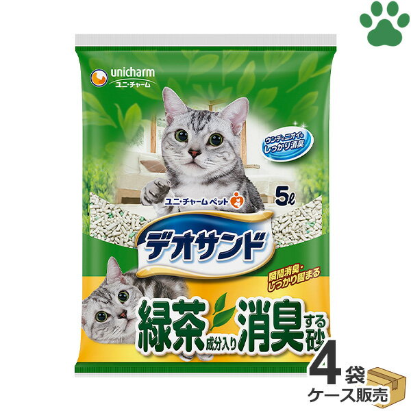 【0】[ケース] 国産 デオサンド 緑茶成分入り消臭する砂 5L × 4袋猫砂 ネコ砂 鉱物系 ベン・・・