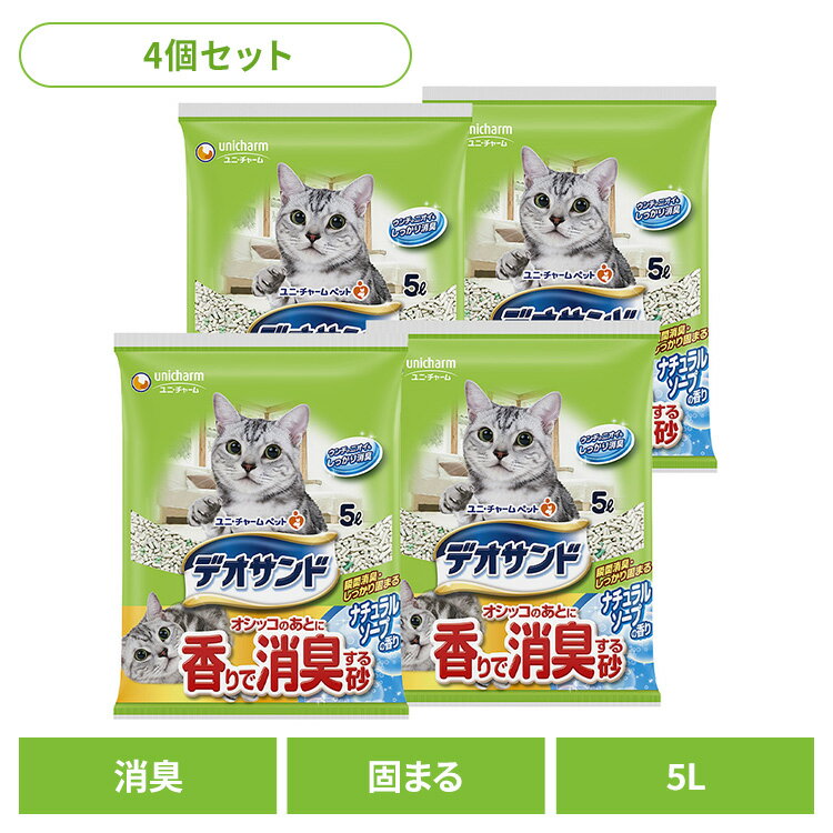【4個セット】猫トイレ用品 猫砂 鉱物タイプ デオサンド オシッコのあとに香りで消臭する砂 ナチュラ・・・