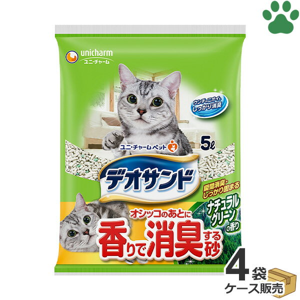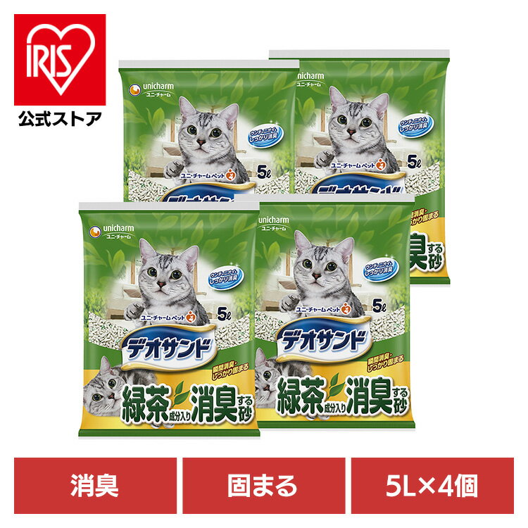 猫トイレ用品 猫砂 鉱物タイプ デオサンド 緑茶成分入り消臭する砂 5L猫 猫砂 緑茶 固まる ユニ・・・
