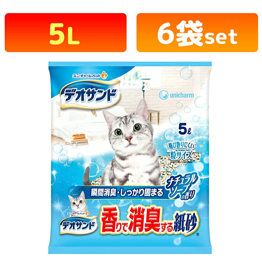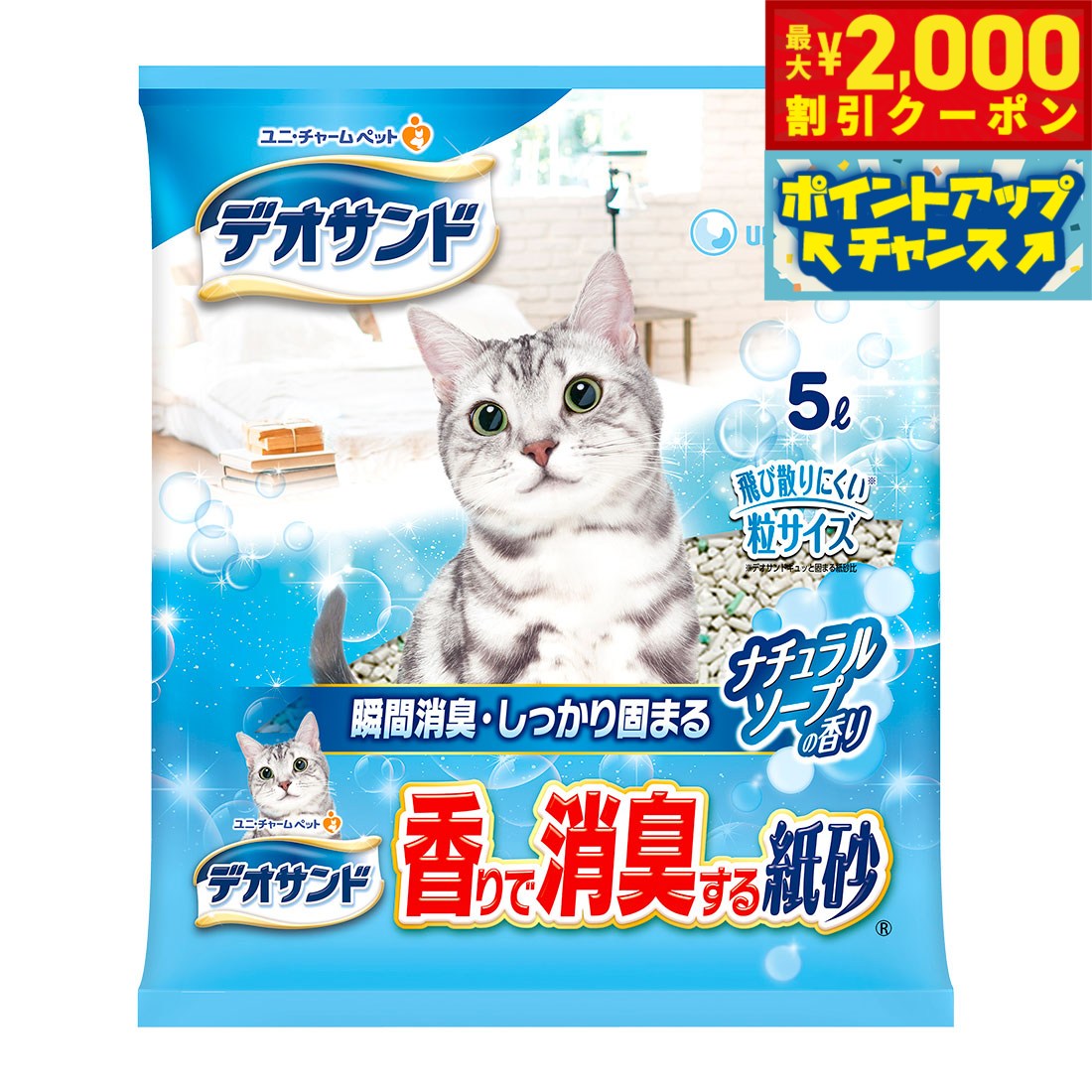 ユニ・チャーム デオサンド 香りで消臭する紙砂 ナチュラルソ−プの香り5L 猫砂 香りつき キャット・・・