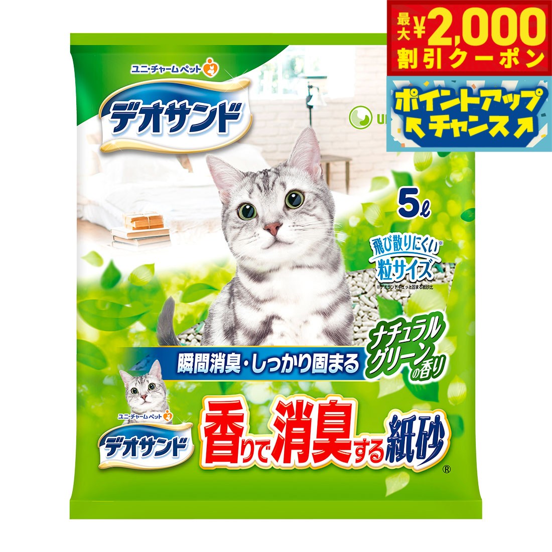 ユニ・チャーム デオサンド 香りで消臭する紙砂 ナチュラルグリーンの香り5L 猫砂 香りつき キャッ・・・