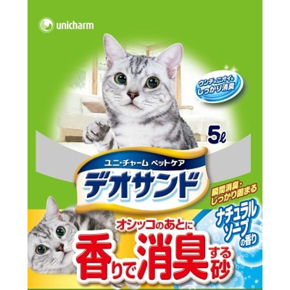 ユニチャーム デオサンド 香りで消臭する紙砂ナチュラルソープの香り 5L 猫の室内トイレ用砂 日本製・・・