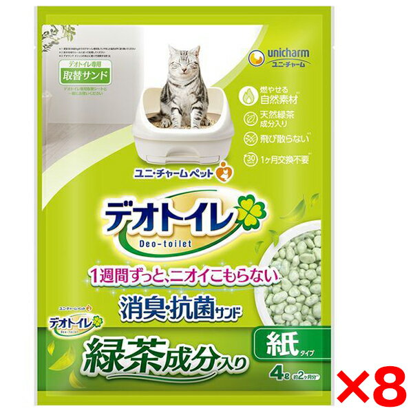 【4個セット】 ユニチャーム デオトイレ 緑茶成分入り消臭・抗菌サンド 4L 猫の室内トイレ用砂 日・・・