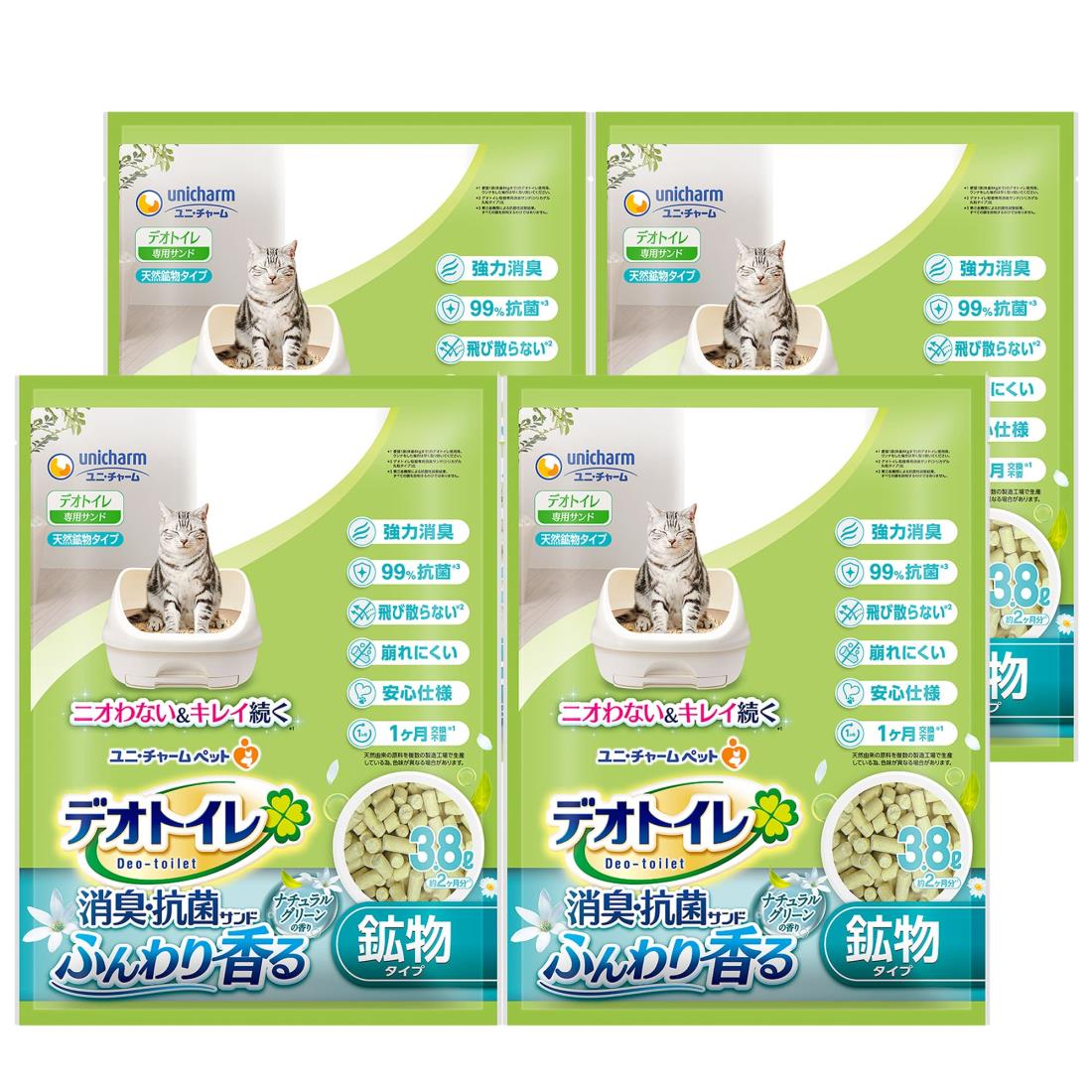 【4個セット】 ユニチャーム デオトイレ 消臭・抗菌サンド 4L 猫の室内トイレ用砂 日本製 ユニ・・・・