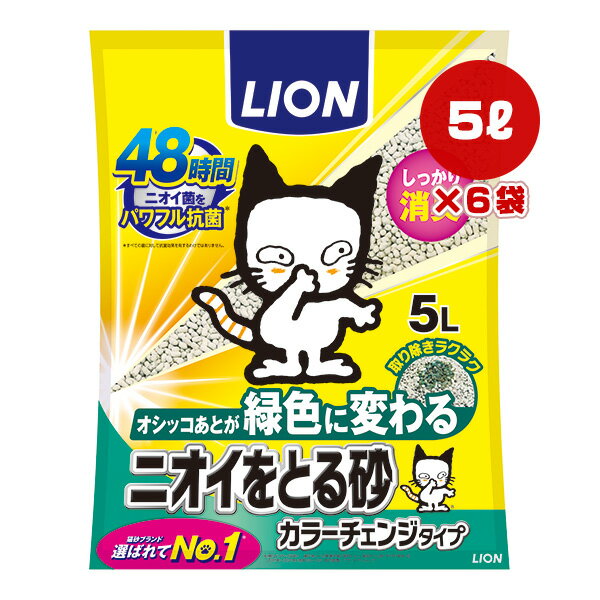 ニオイをとる砂 カラーチェンジタイプ 5L×6袋 ライオン ▼a ペット グッズ 猫 キャット トイ・・・