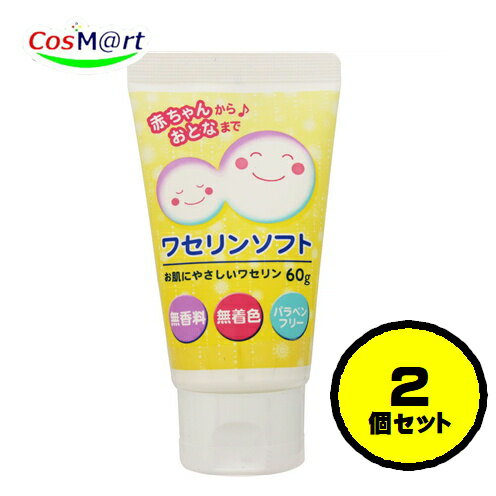 【2個セット】 健栄製薬 ワセリンソフト 60g AJD 無香料 無着色 防腐剤(パラベン類)フリー・・・