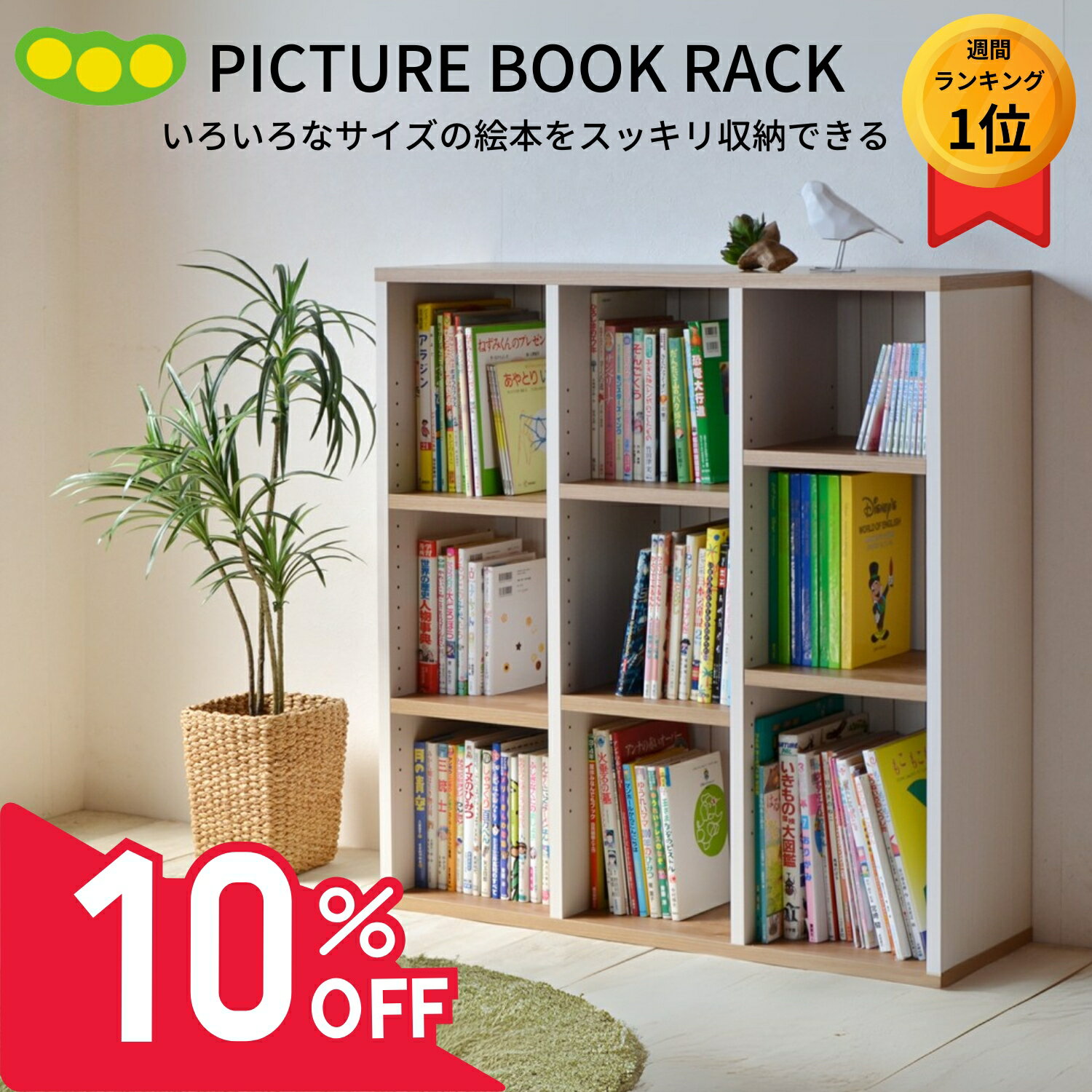 【12/7(日)17時~1時間限定!10%OFF】 絵本棚 本棚 絵本 書棚 絵本ラック オープン ・・・
