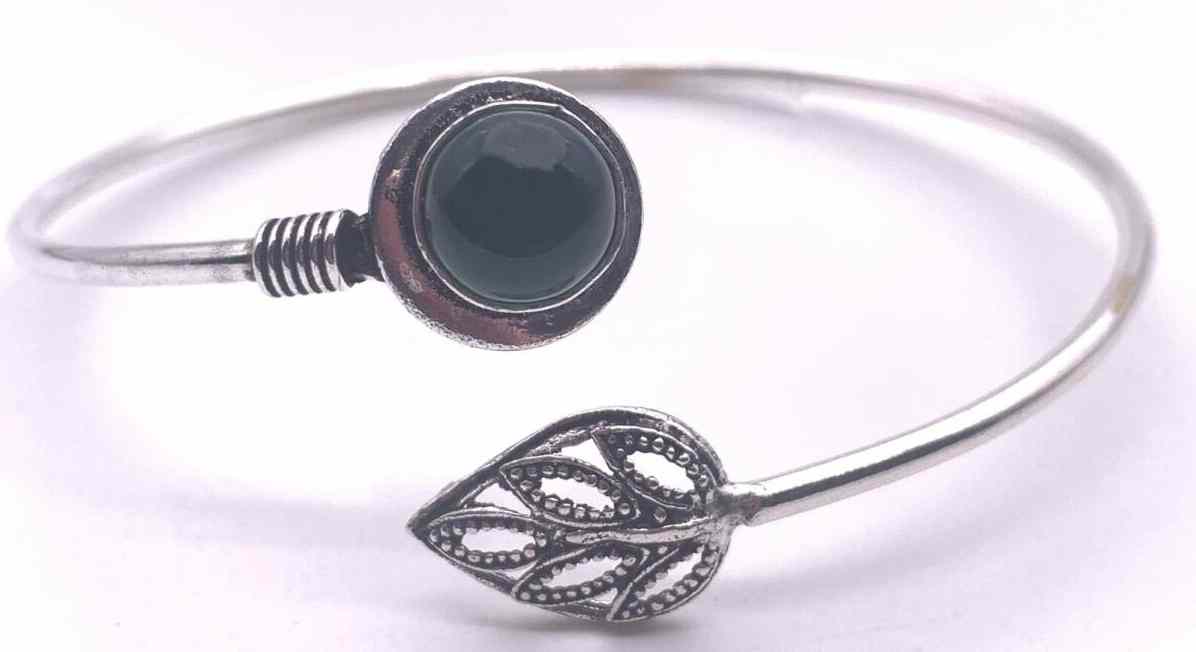 天然石アベンチュリン(インド翡翠) &リーフバングル -01
