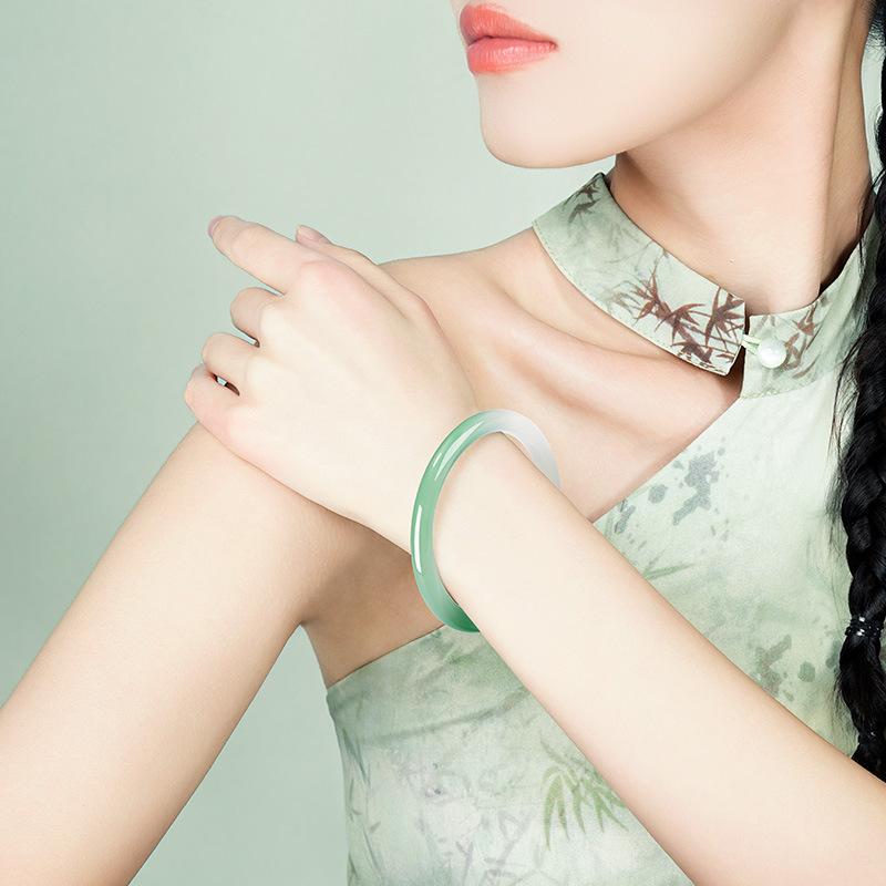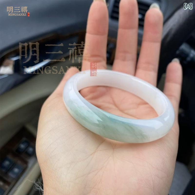 バングル レディース アイス瑪瑙 翡翠ブレスレット 油青色 細い腕輪 美人 アクセサリー 半山半水