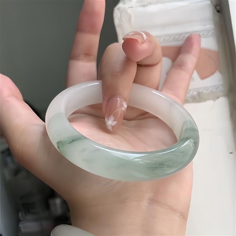 ブレスレット レディース 翡翠 ジェダイト バングル 薄緑色 アイスジェダイト 腕輪 アクセサリー ・・・
