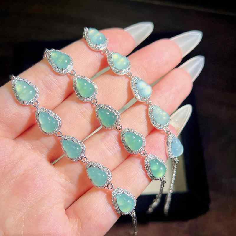 ブレスレット レディース ファッション 軽奢風 グアテマラ産 天然 ブルー翡翠 陽緑 瓢箪(ひょうた・・・