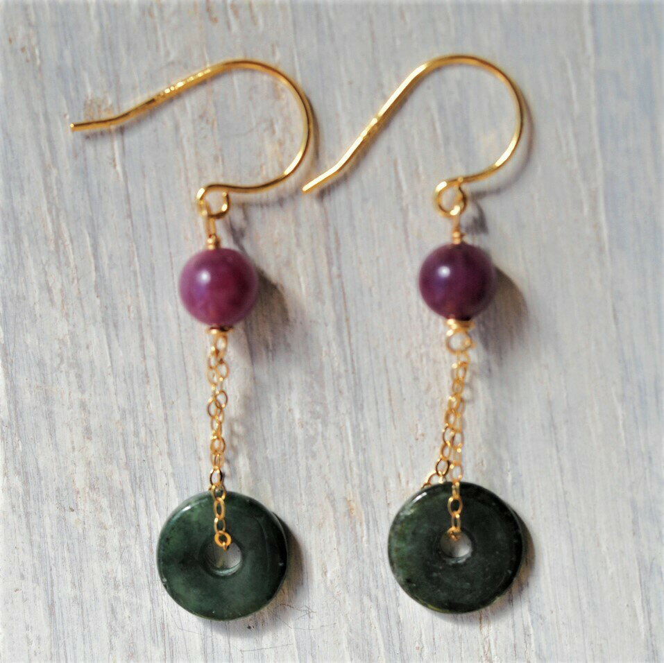 翡翠 ルビー SV ピアス 天然無処理ヒスイ
