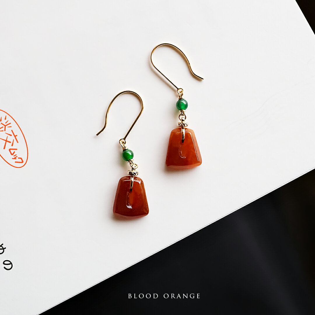 翡翠(ヒスイ) × K18YG ピアス『BLOOD ORANGE』レッドオレンジ&グリーン翡翠 フッ・・・