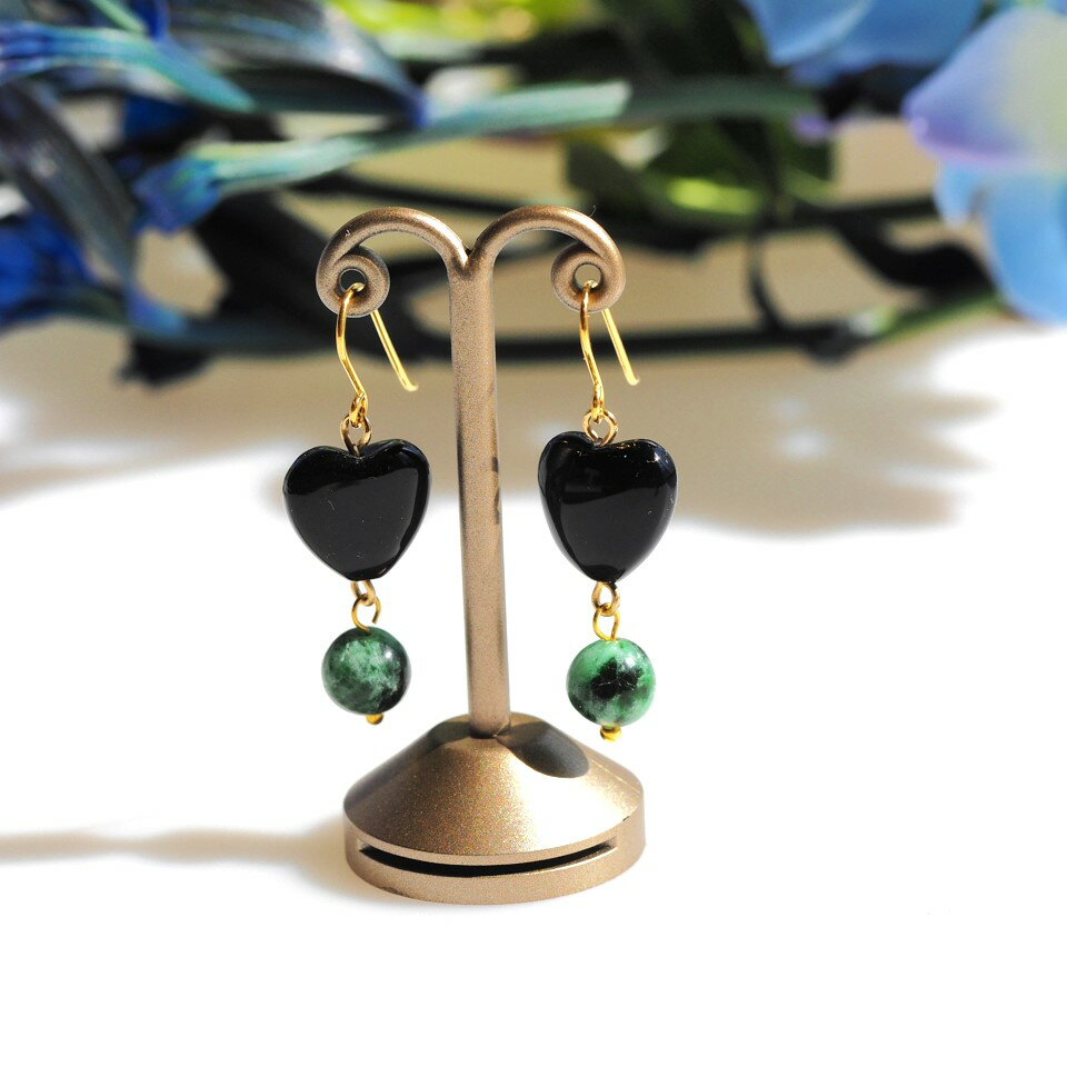オニキス 翡翠 SV ピアス 天然無処理ヒスイ