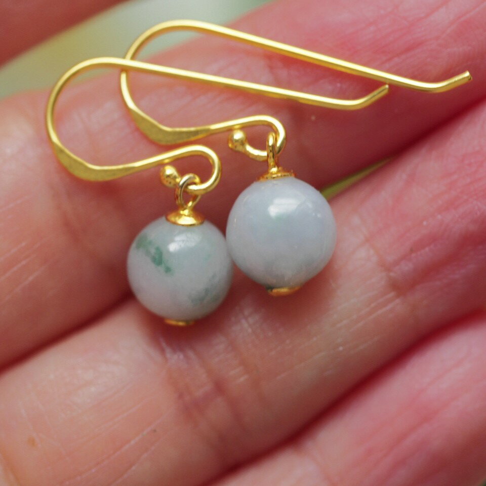 天然石 ワイヤージュエリー ジェード 翡翠・ピアス