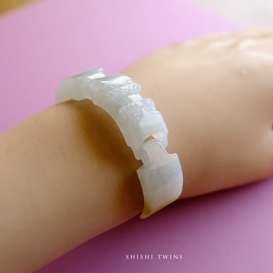 翡翠(ヒスイ) 彫刻 ブレスレット パーツ 『SHISHI TWINS』 ミルキーホワイト翡翠 ブレ・・・