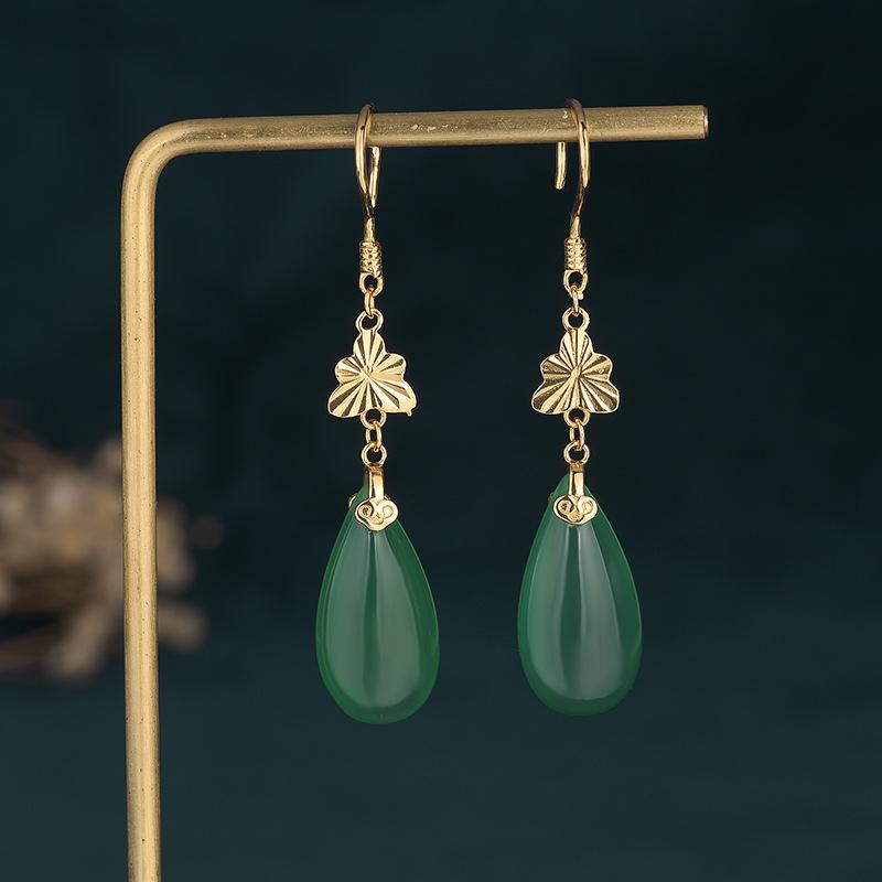 レディース タッセル ピアス イヤリング ハイエンド エレガント 大きい 顔 適 長い 翡翠 中華風