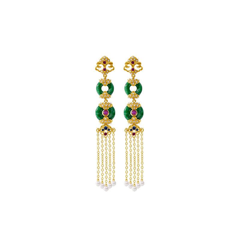 ピアス レディース 翡翠 玉石 イヤリング タッセル ショール 旗袍 首飾 ブローチ 高級感 電気メ・・・