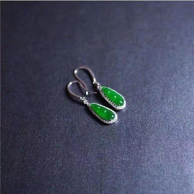 ピアス レディース S925 シルバー ジルコニア 翡翠風 福豆 復古 エレガント イヤリング