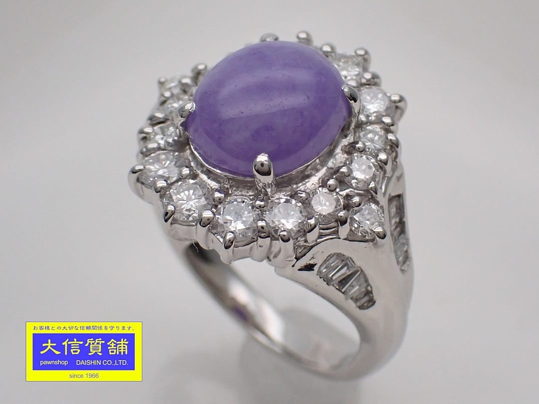 PT900 プラチナ ラベンダーヒスイ ダイヤ リング J2.921ct D1.25ct 11号 1・・・