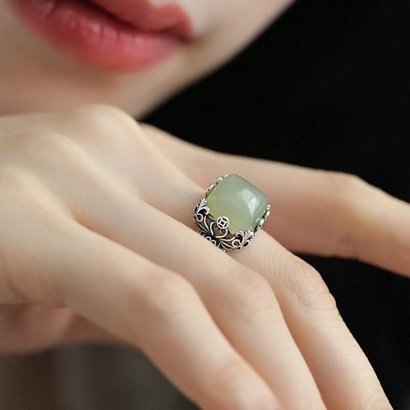 リング 925 シルバー アクセサリー 銅貨 天 青 翡翠 キューブ オープン 指輪 サイズ 調整可・・・