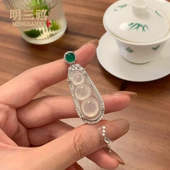 ネックレス レディース S925純銀 天然水沫翡翠 高透明 福豆 モチーフ ペンダント シンプル エ・・・
