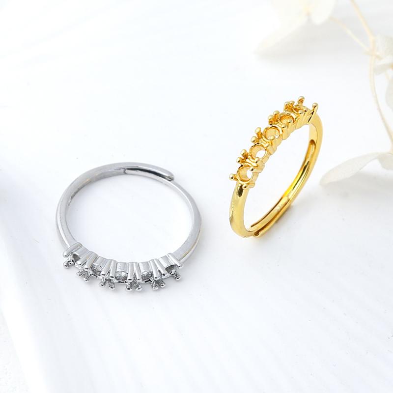 指輪 レディース サイズ調整可能 5粒石用 3mm幅 ラインセッティング 翡翠 玉石 空枠 DIYパ・・・