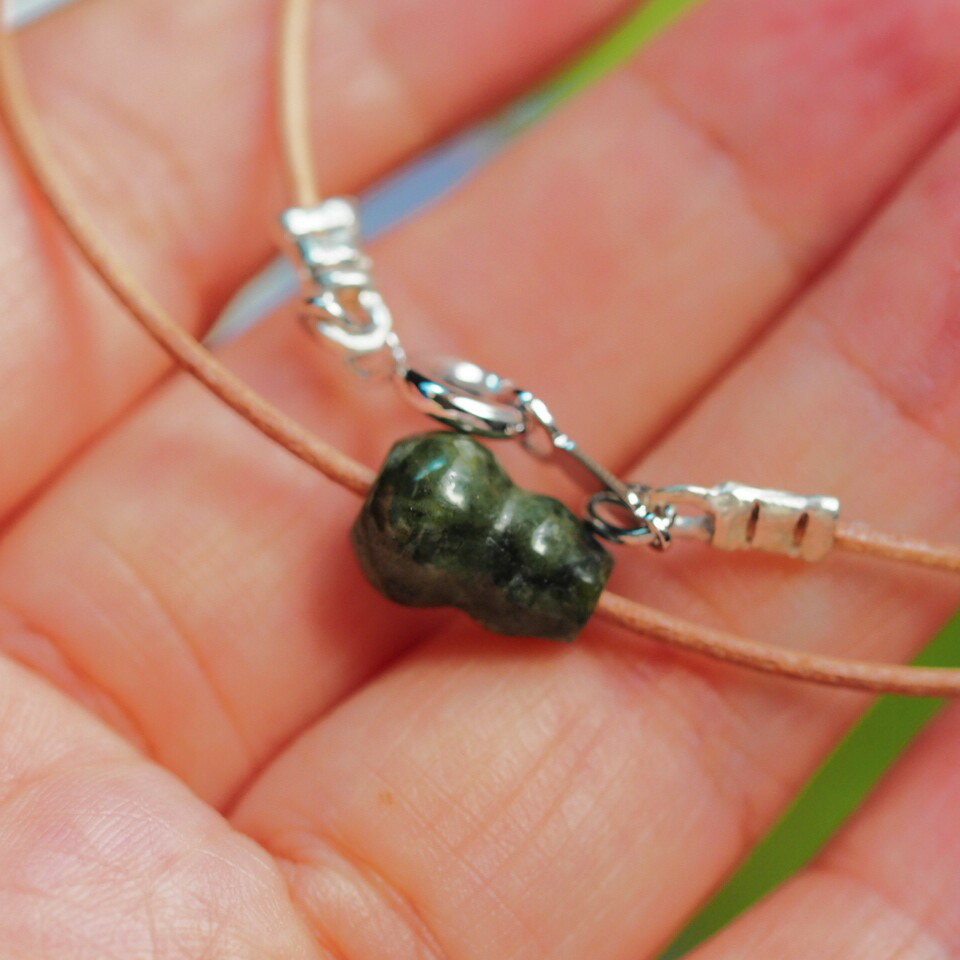 天然翡翠 牛革紐ネックレス SV 極小粒