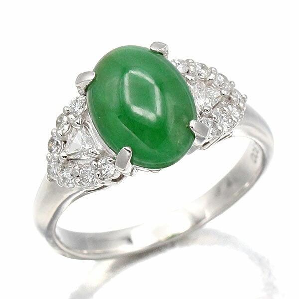 プラチナ ヒスイ ダイヤモンド リング 14号 J2.92ct D0.36ct Pt900 鑑別書 ・・・