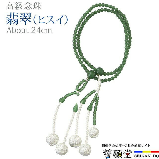 数珠 念珠 【翡翠(ヒスイ) 共仕立 正絹かがり梵天 8.0寸 桐箱入】お数珠 お念珠女性用 男性用・・・