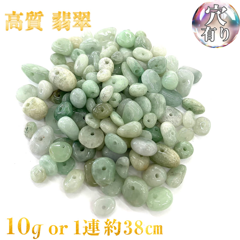【高級ランク】高質 翡翠 穴あき さざれ石 10g 28粒前後 また1連約38cm 天然石 ハンドメ・・・
