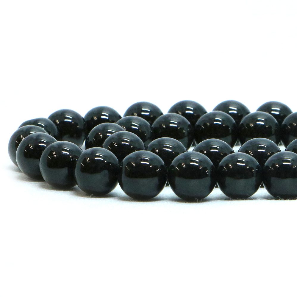○1連販売○黒翡翠(ブラックミャンマージェイド)【丸玉】8mm【天然石 ビーズ パワーストーン】